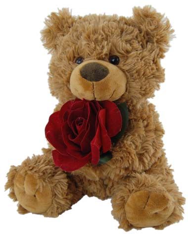 BEAR TILLY W/RED ROSE BROWN 24CM
