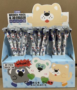 PENCIL KOALA W/3D ERASER- 36PC DISPLAY