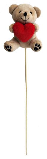 BROWN BEAR W/HEART ON A STICK 10CM